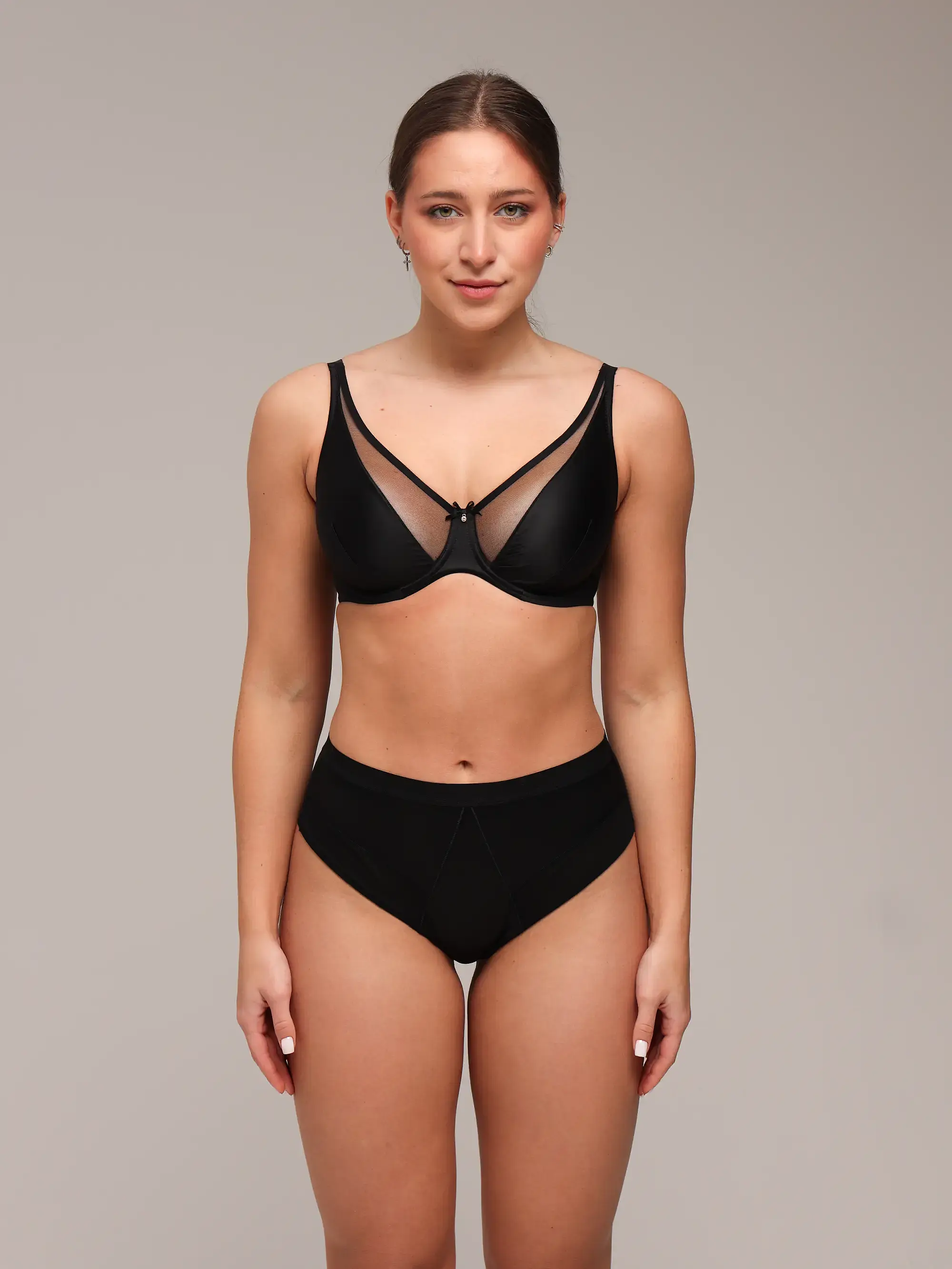 Цей бюстгальтер від латвійського бренду Zebra поєднує розкіш і комфорт. М’які чашки на кісточках створені з гладкого сатину, доповненого вставками із сітки, що додають моделі витонченості та легкості. Такий дизайн забезпечує природну підтримку та стильний вигляд, ідеально підходячи як для повсякденного носіння, так і для особливих моментів.